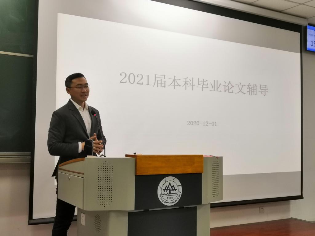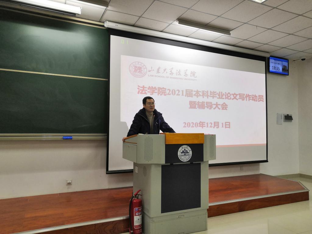 在大会的第一个环节,郑智航教授强调了写好本科毕业论文的重要性以及教育部要对本科毕业论文进行抽审的政策,叮嘱大家要重视并写好本科毕业论文;指出此次写作是对同学们知识创新和知识生产能力的一种检验,同学们要在本科论文的写作过程中训练认真的态度,为以后的学习工作做铺垫。