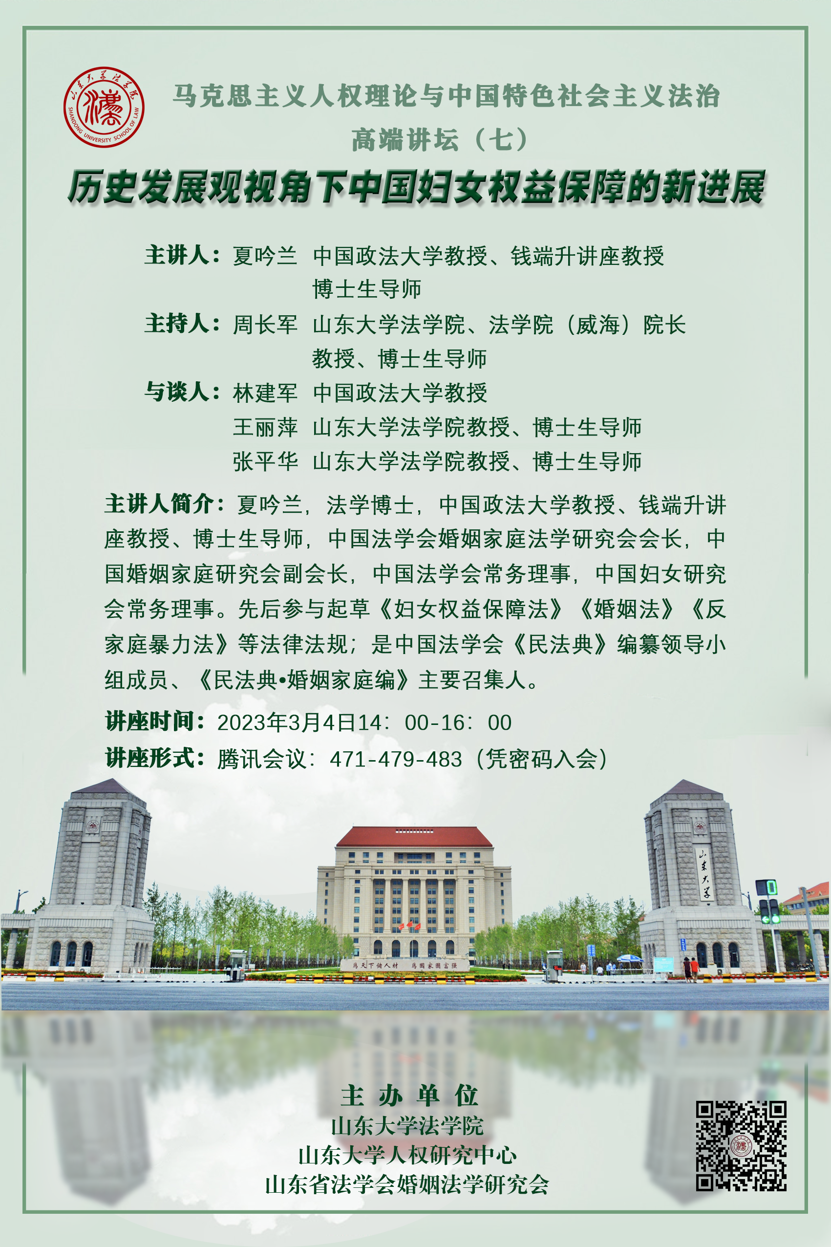 讲座预告 | 马克思主义人权理论与中国特色社会主义法治高端讲坛(七):历史发展观视角下中国妇女权益保障的新进展