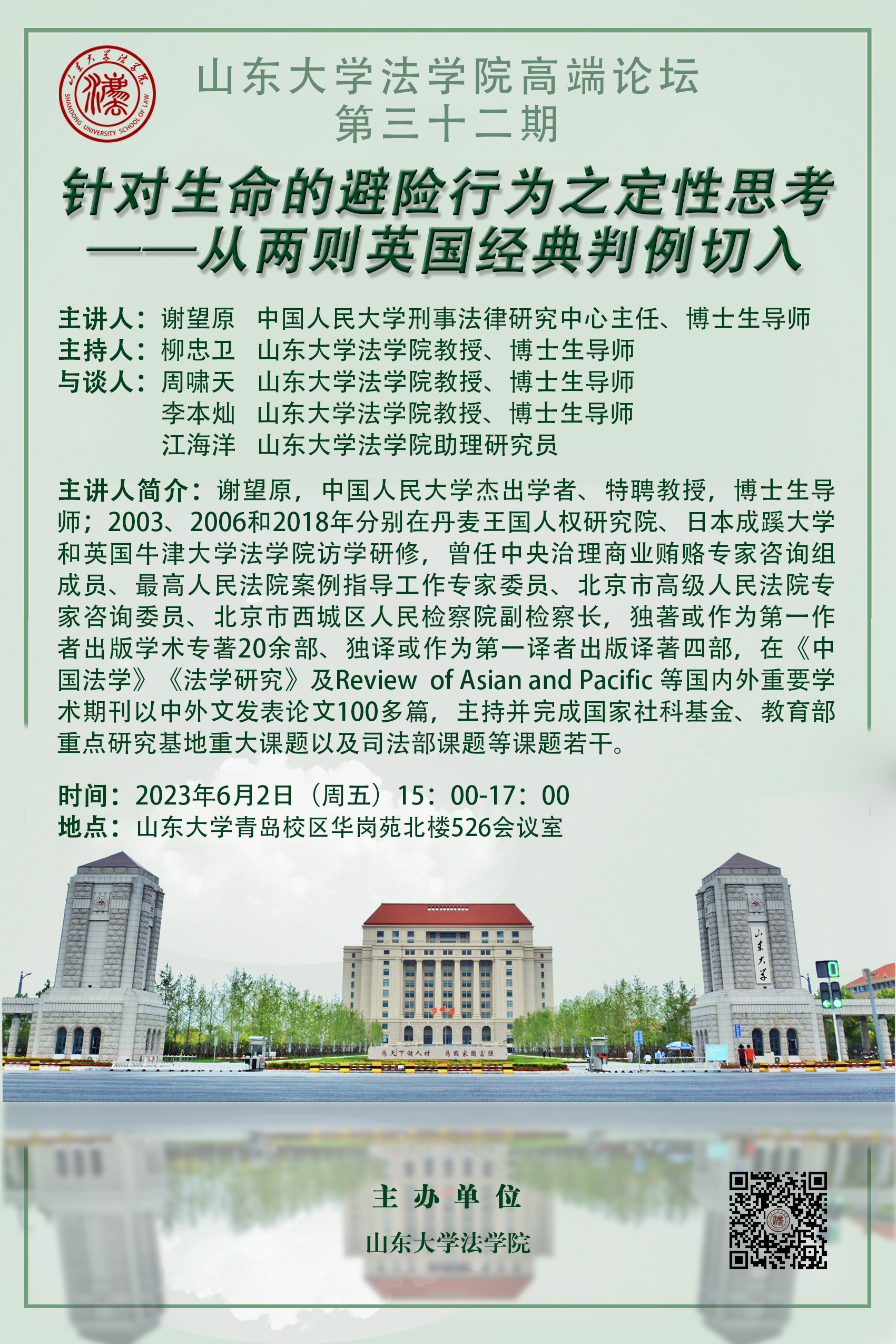 讲座预告 | 36365线路检测中心入口高端论坛第三十二期:针对生命的避险行为之定性思考——从两则英国经典判例切入
