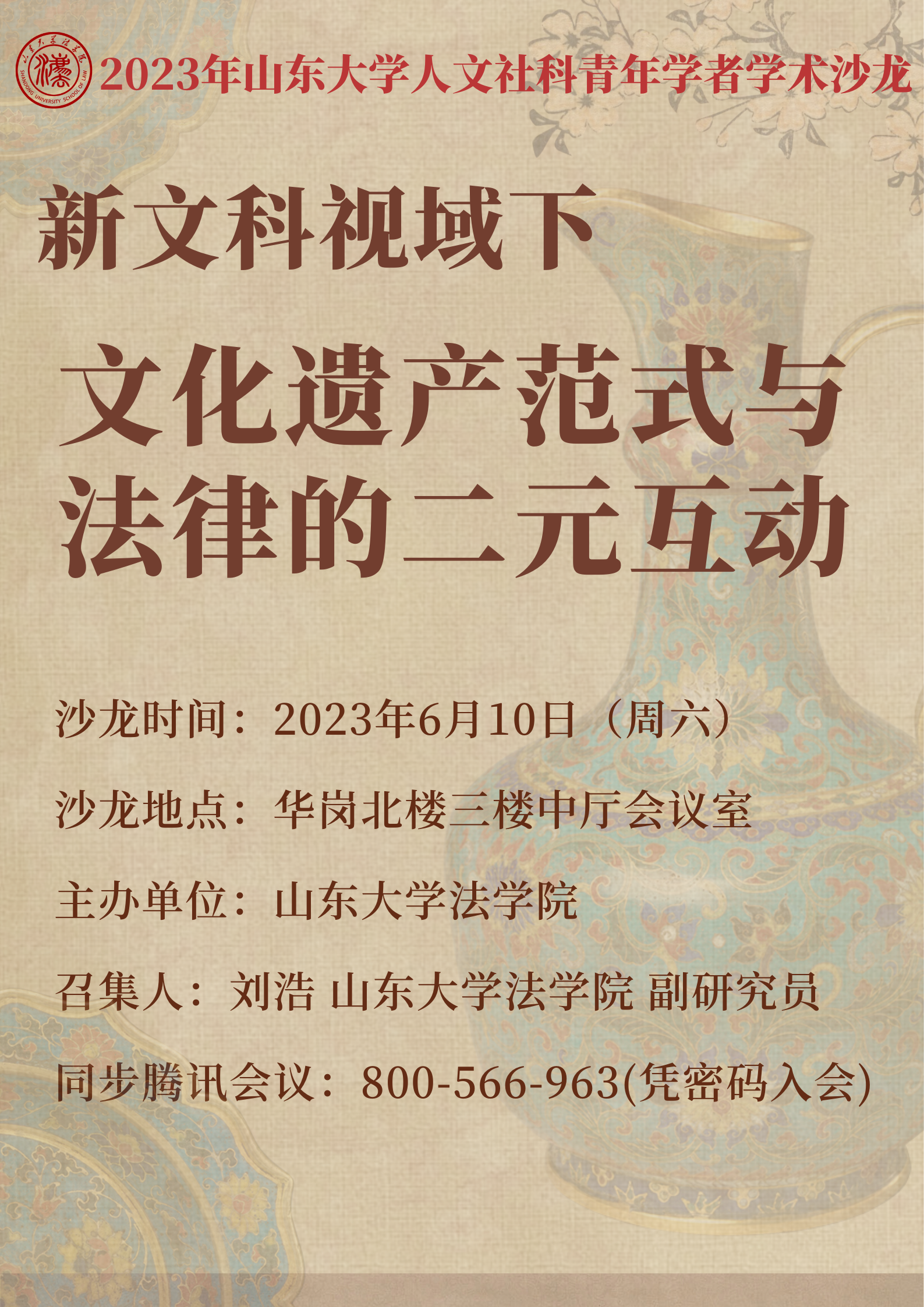 讲座预告 | 2023年36365线路检测中心入口人文社科青年学者学术沙龙:新文科视域下文化遗产范式与法律的二元互动