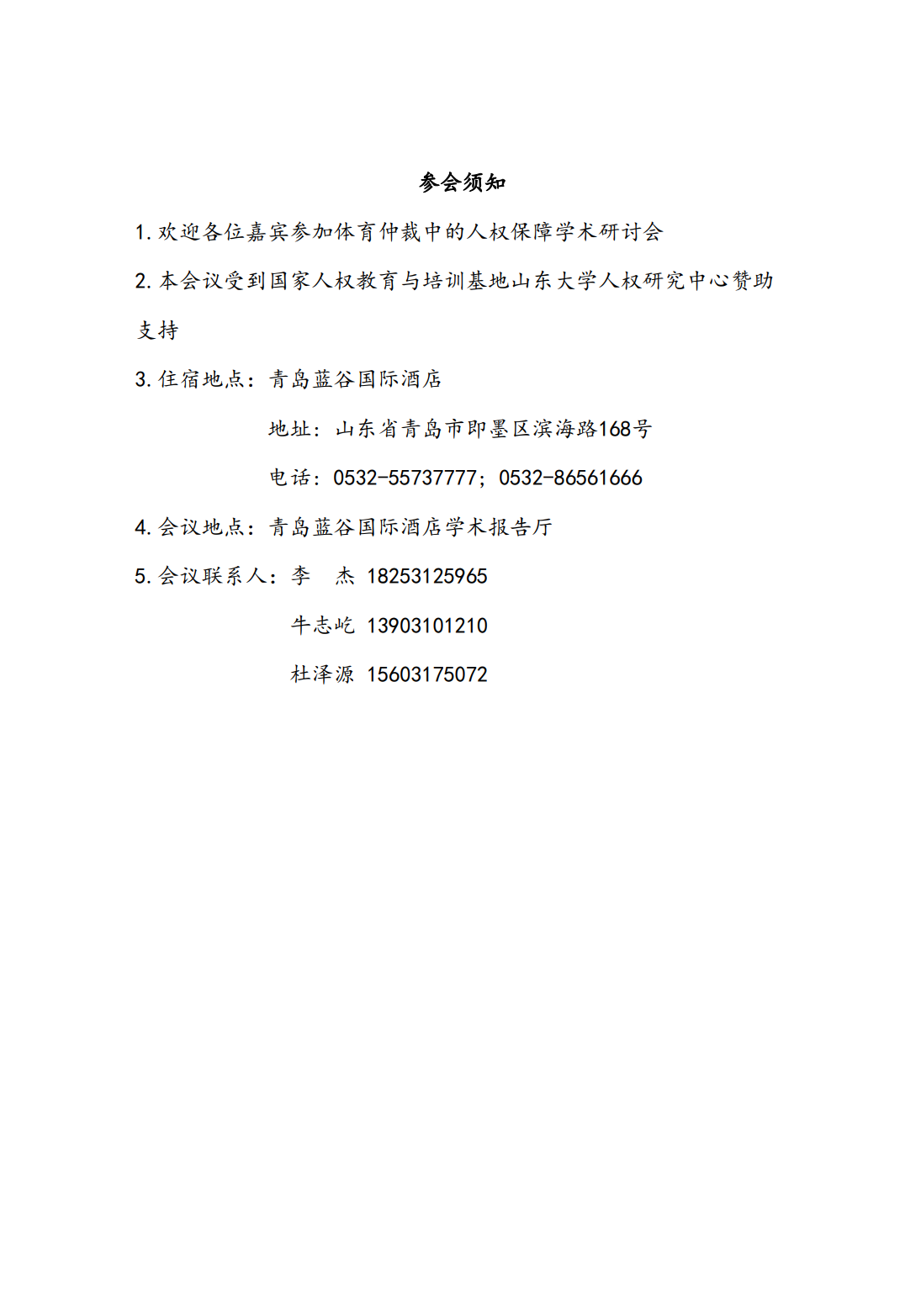 会议议程 | 体育仲裁中的人权保障学术研讨会