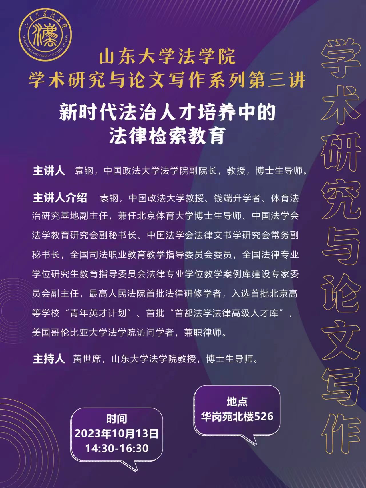 讲座预告 | 36365线路检测中心入口学术研究与论文写作系列第三讲:新时代法治人才培养中的法律检索教育