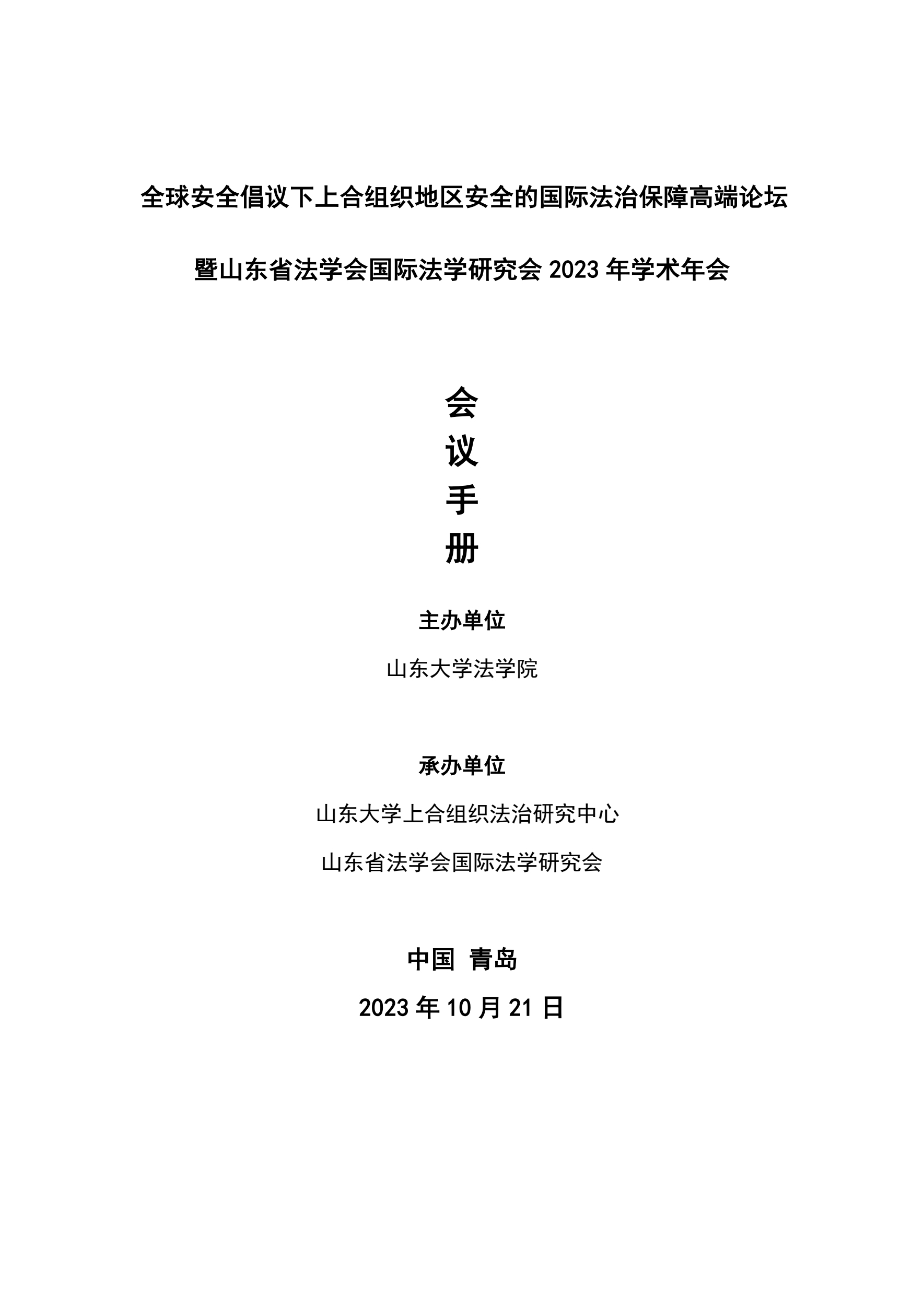 会议议程 | 全球安全倡议下上合组织地区安全的国际法治保障高端论坛暨山东省法学会国际法学研究会2023年学术年会