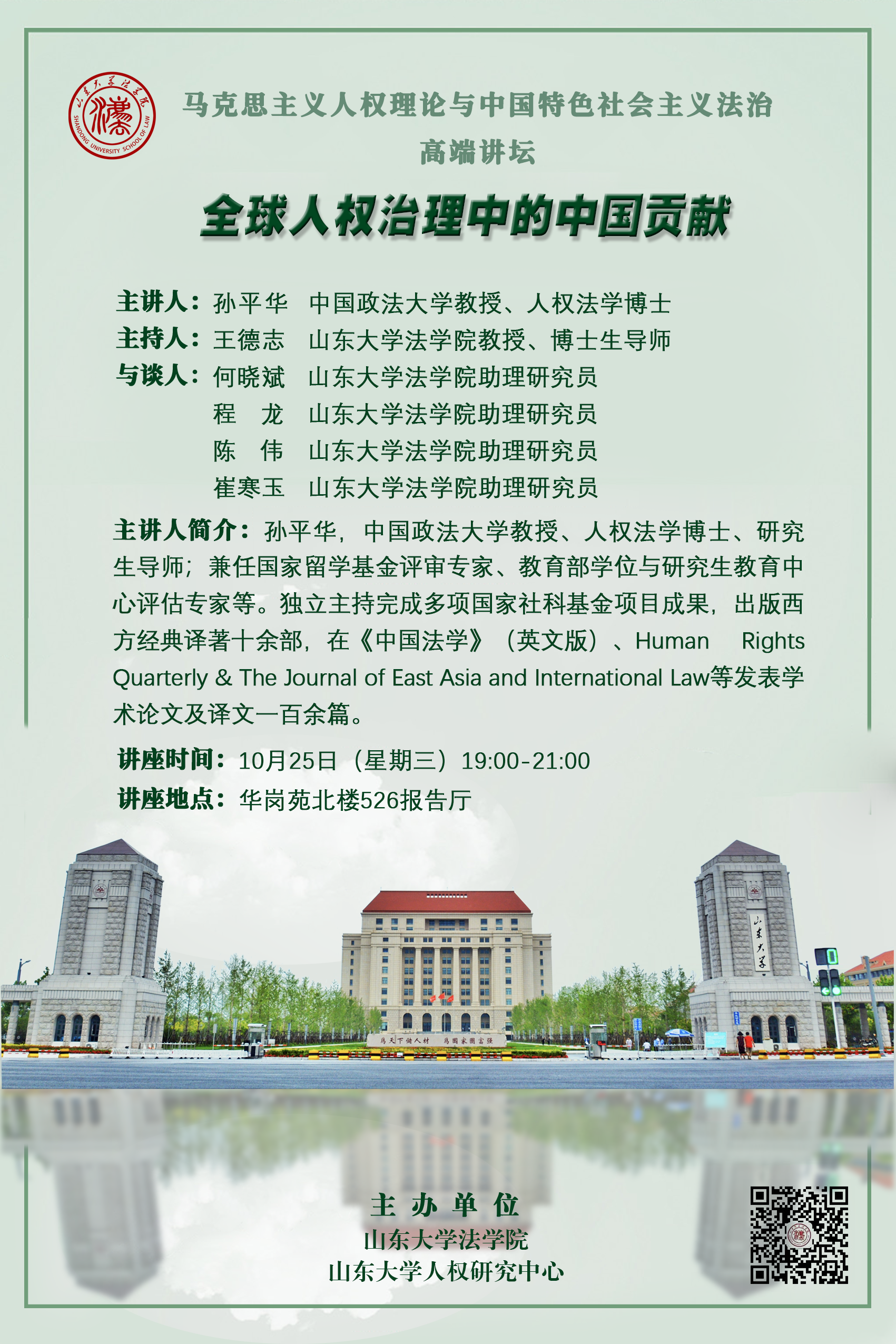 讲座预告 | 马克思主义人权理论与中国特色社会主义法治高端讲坛:全球人权治理中的中国贡献