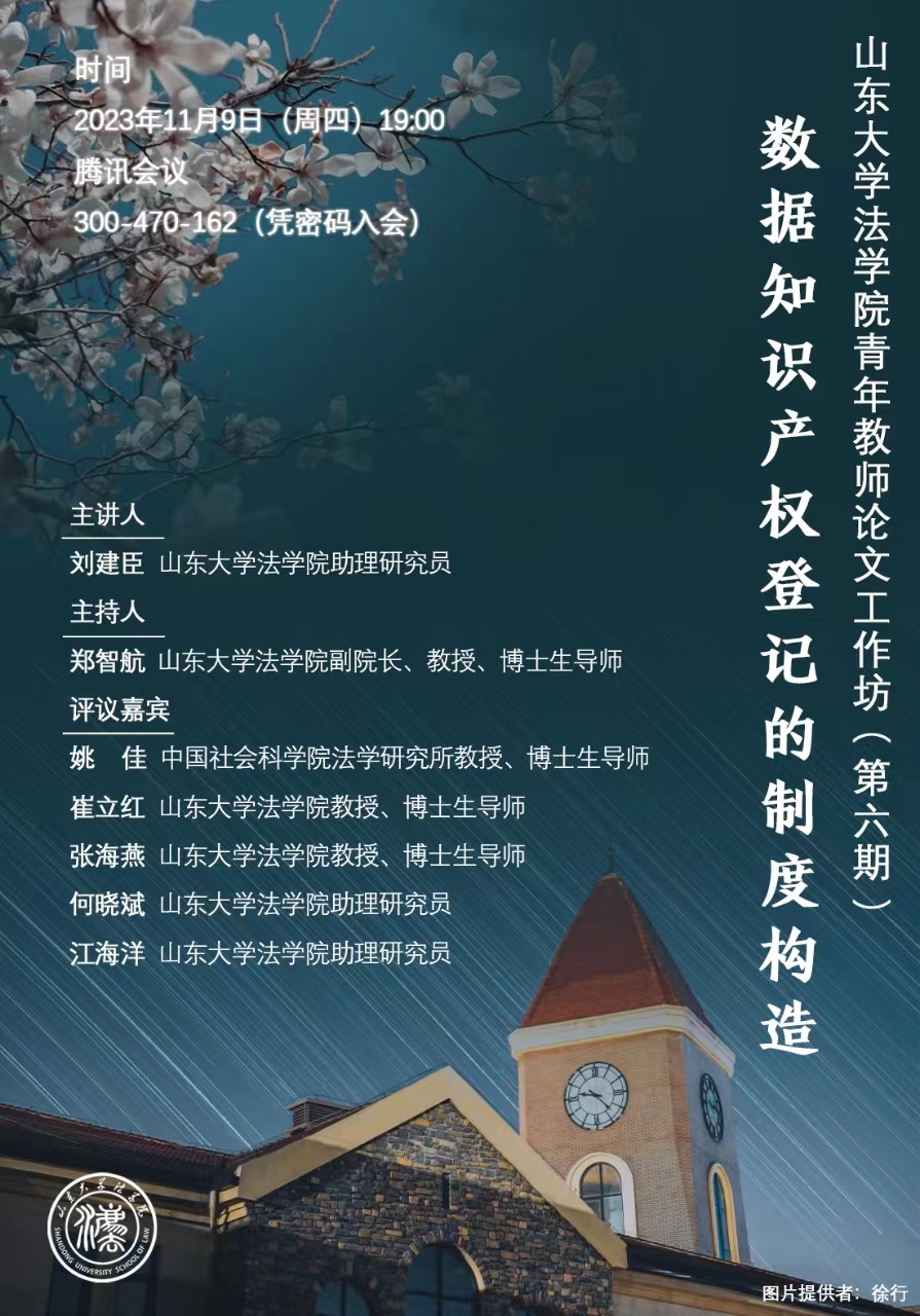 讲座预告 | 36365线路检测中心入口青年教师论文工作坊(第六期):数据知识产权登记的制度构造