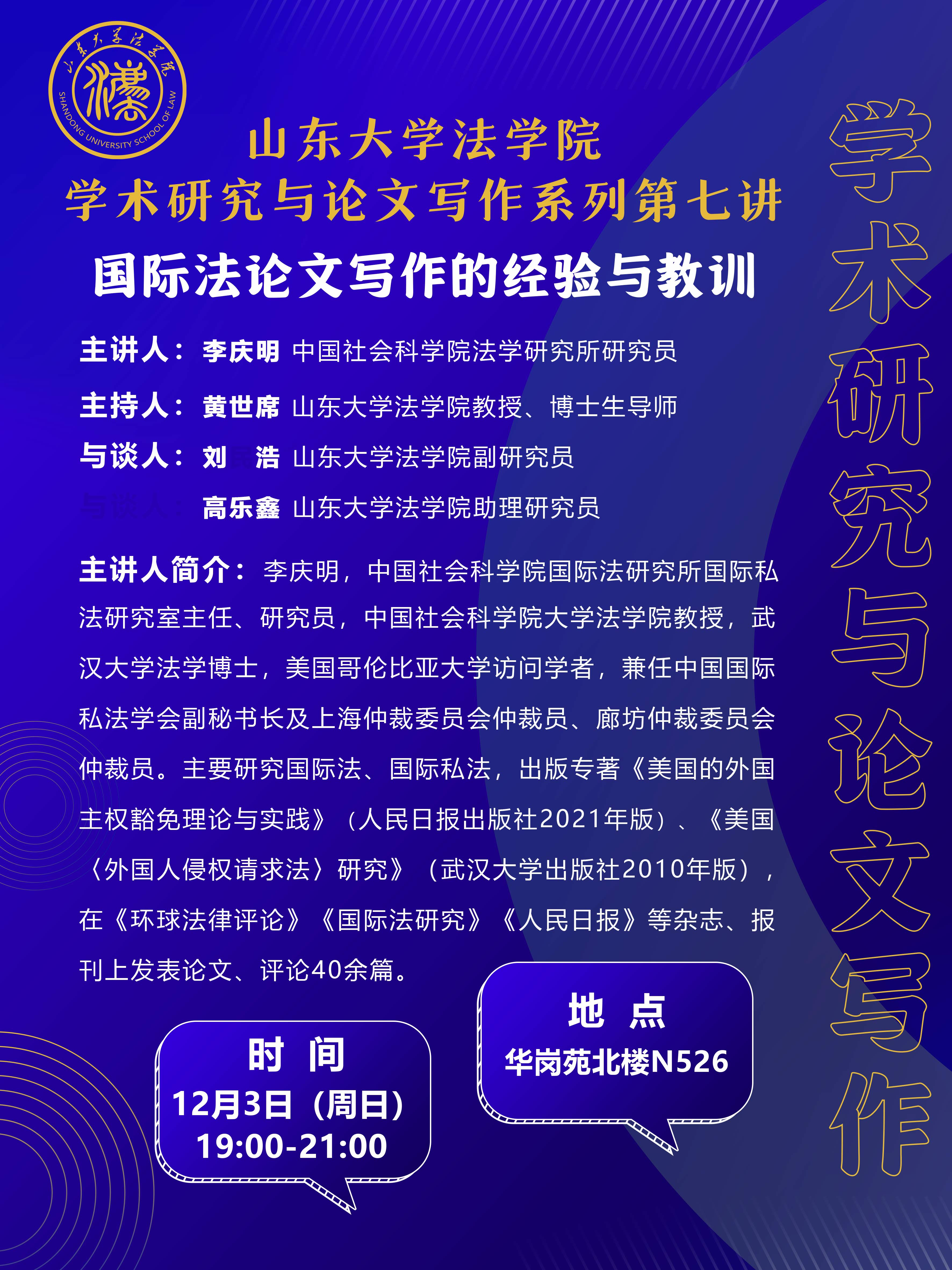 讲座预告 | 36365线路检测中心入口学术研究与论文写作系列第七讲:国际法论文写作的经验与教训