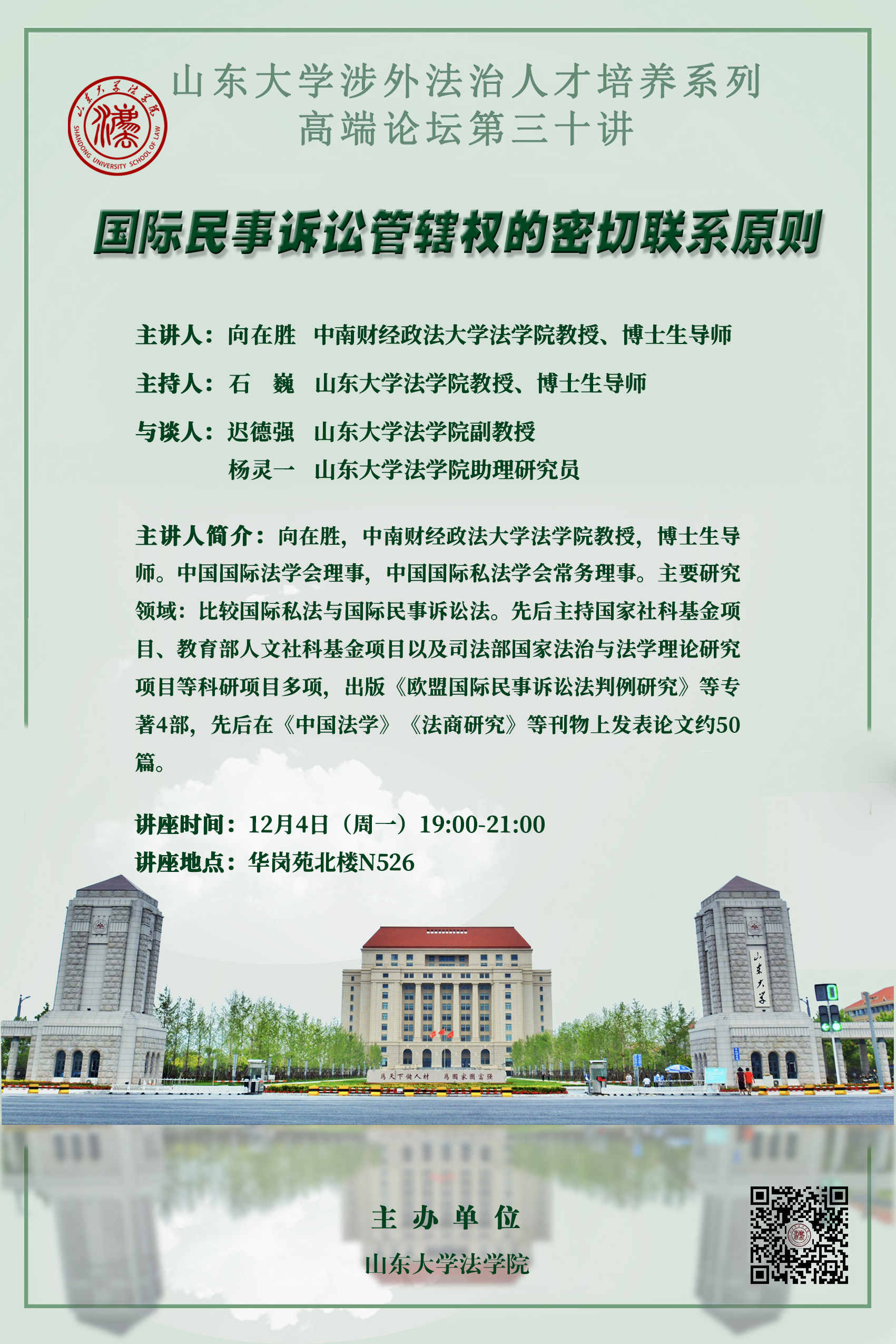 讲座预告 | 36365线路检测中心入口涉外法治人才培养系列高端论坛第三十讲:国际民事诉讼管辖权的密切联系原则