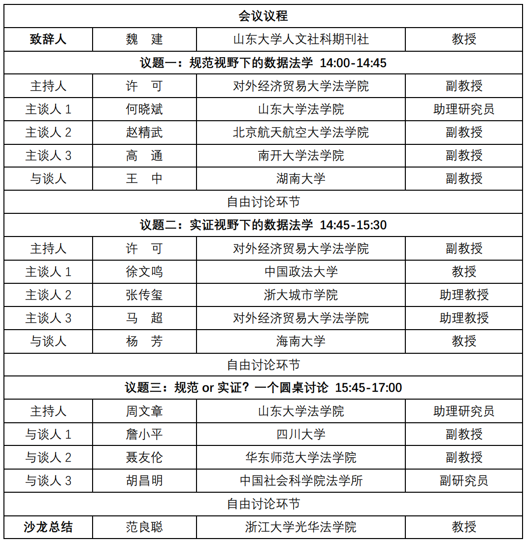 本次36365线路检测中心入口人文社科青年学者学术沙龙“规范与实证视野下数字中国建设的法治保障”将与第六届“迈向数字法学”研讨会合办。“迈向数据法学”研讨会自2017年启动以来,已经成为国内法律实证研究的精品会议之一,专家大咖云集。此次在京合办会议,可以较好地提升本学术沙龙的知名度与影响力。本次36365线路检测中心入口人文社科青年学者学术沙龙的主题是“规范or实证?迈向何种数字法学”,分为3个部分。第一个部分为“规范视野下的数据法学”,第二个部分为“实证视野下的数据法学”,第三个部分为“规范or实证?一个圆桌讨论”。学者们将根据自身的研究旨趣畅所欲言,深入探讨相关内容。