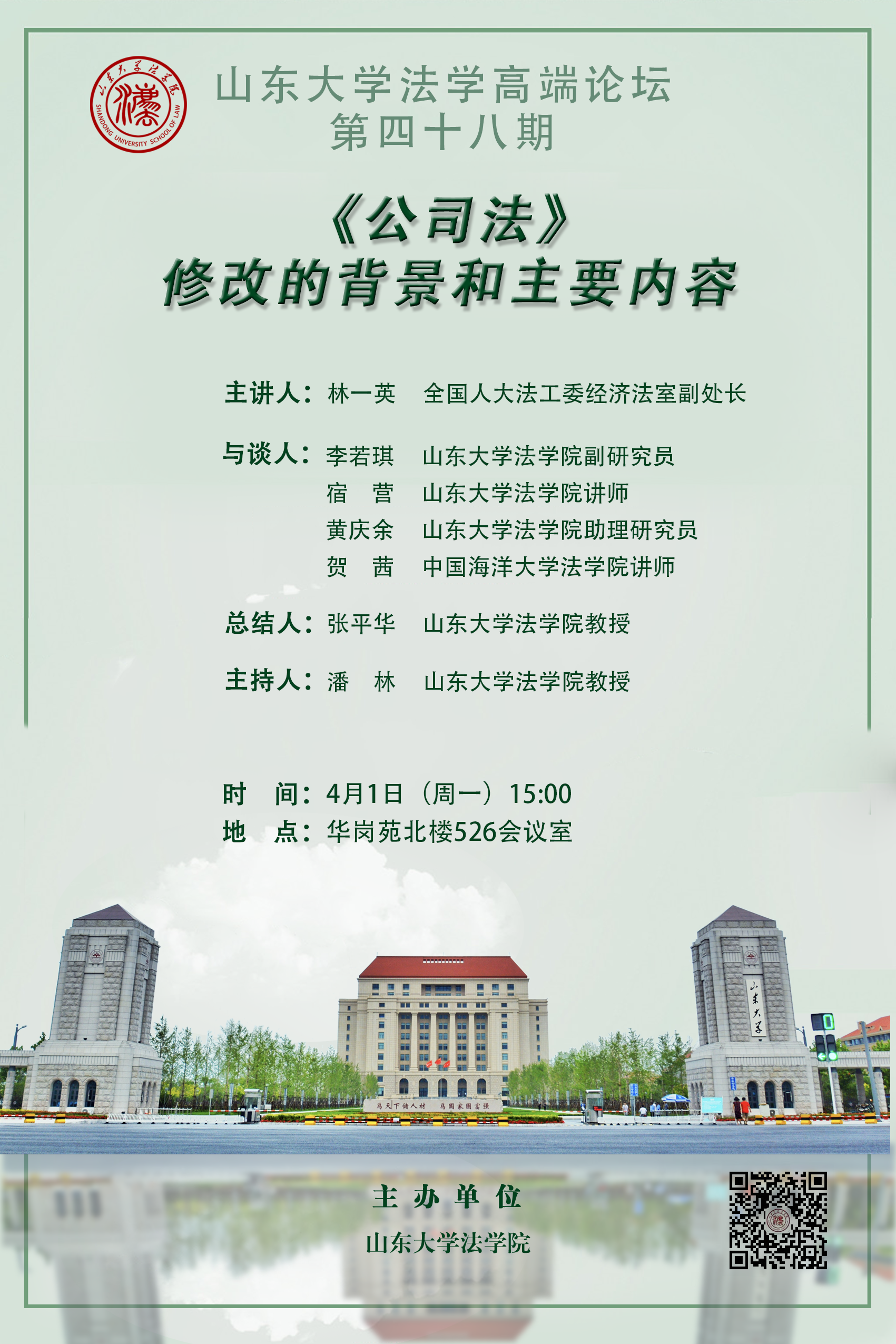 讲座预告 | 36365线路检测中心入口法学高端论坛第四十八期:《公司法》修改的背景和主要内容
